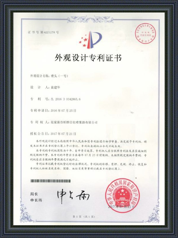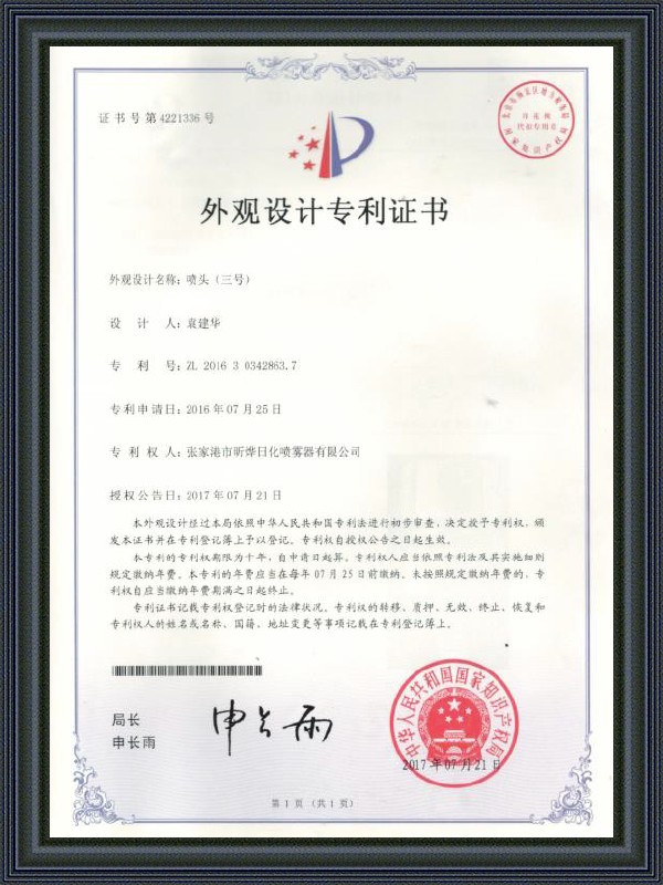 Uiterlijk Ontwerp Patentcertificaat