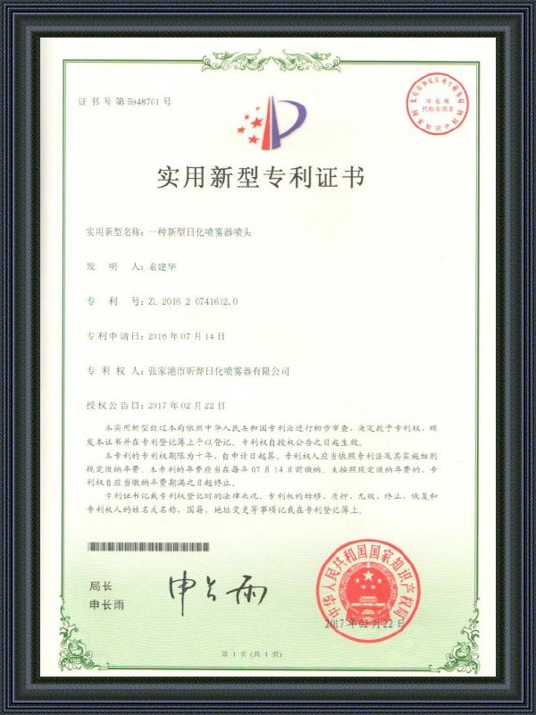 Gebruiksmodel patentcertificaat